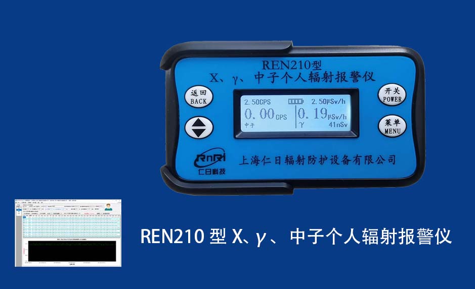 REN210型X、γ、中子個人輻射報警儀內(nèi)置SiPM和鋰玻璃晶體組成中子探測器儀器,采用反照率方式探測中子射線,同時也能探測X、γ射線。因此它可同事監(jiān)檢測X、γ、中子三種射線。能顯示工作場所的劑量當(dāng)量率和累積劑量,更換電池時,日期及累積數(shù)據(jù)能永久保存。可選配RenRiPersonal個人劑量管理軟件,該軟件可存儲多個人的歷史數(shù)據(jù),能記錄日累積、月累積、年累積、輻照時長、計算平均劑量率、扣除或不扣除本底輻射,且以文字和圖譜的方式展現(xiàn)數(shù)據(jù)。廣泛應(yīng)用于環(huán)保、化工、水泥、煤礦、土木工程、石油、醫(yī)院、疾控、進(jìn)出口商檢、核電、加速器、機場、中子源庫和其他安檢、邊境控制海關(guān)檢測等